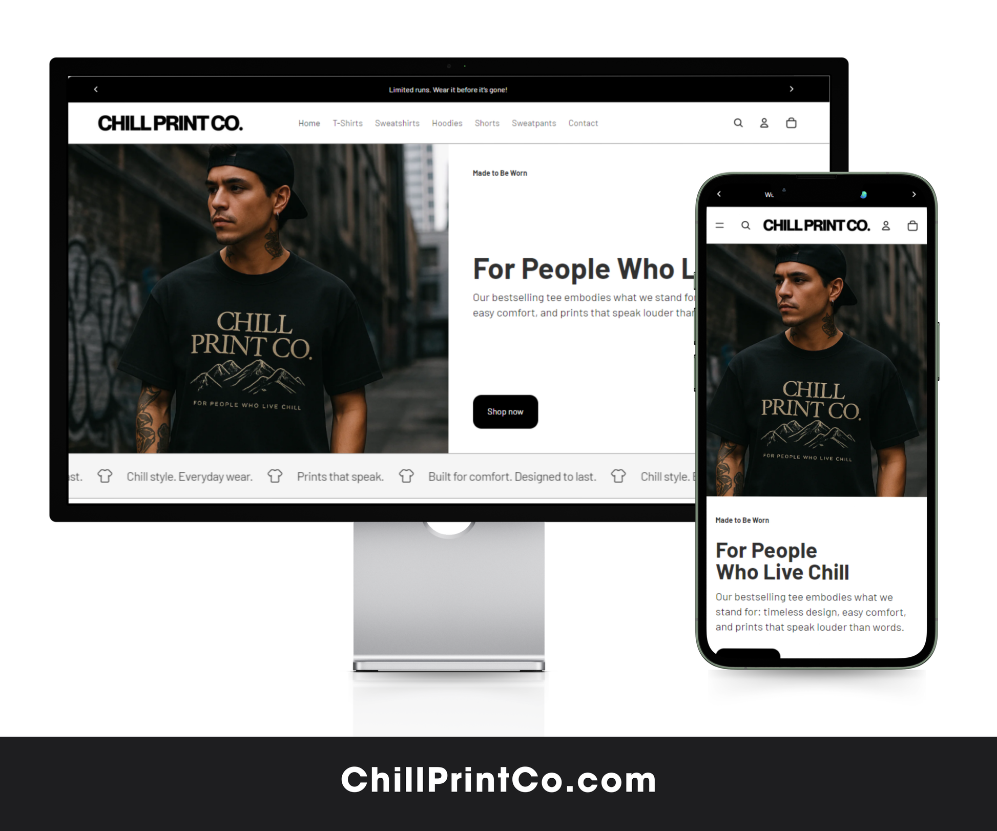 Streetwear sells with strong margins and timeless appeal. ChillPrintCo.com is optimized to profit: