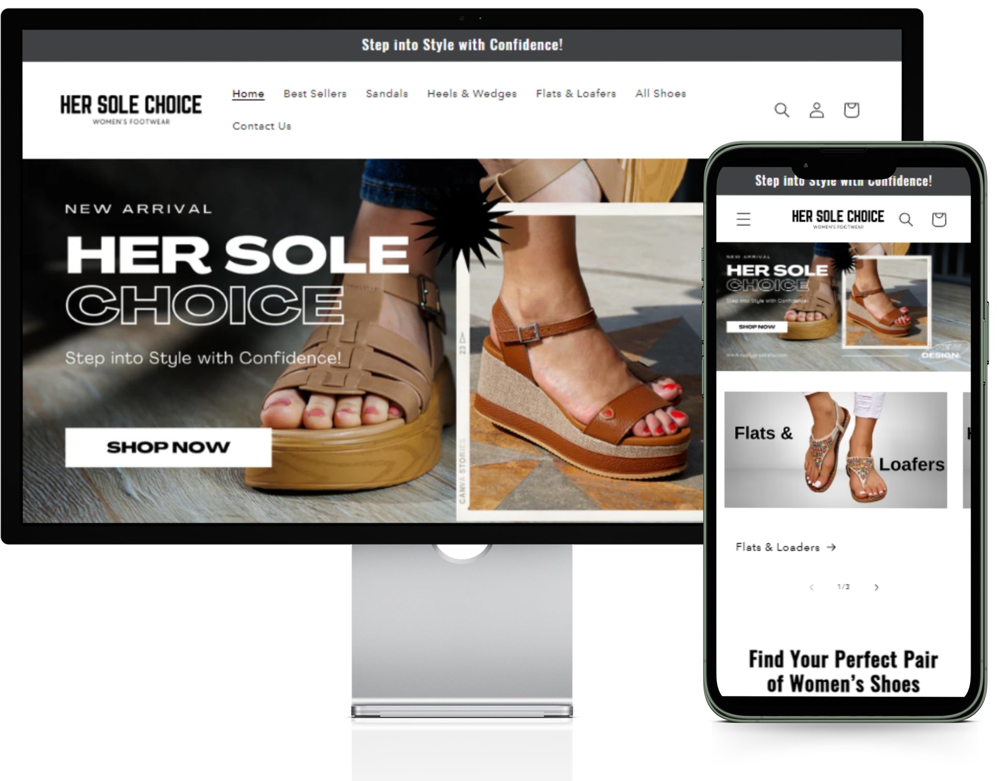 HerSoleChoice.com features a sleek, intuitive website with a modern aesthetic, providing customers with a seamless and enjoyable shopping experience.