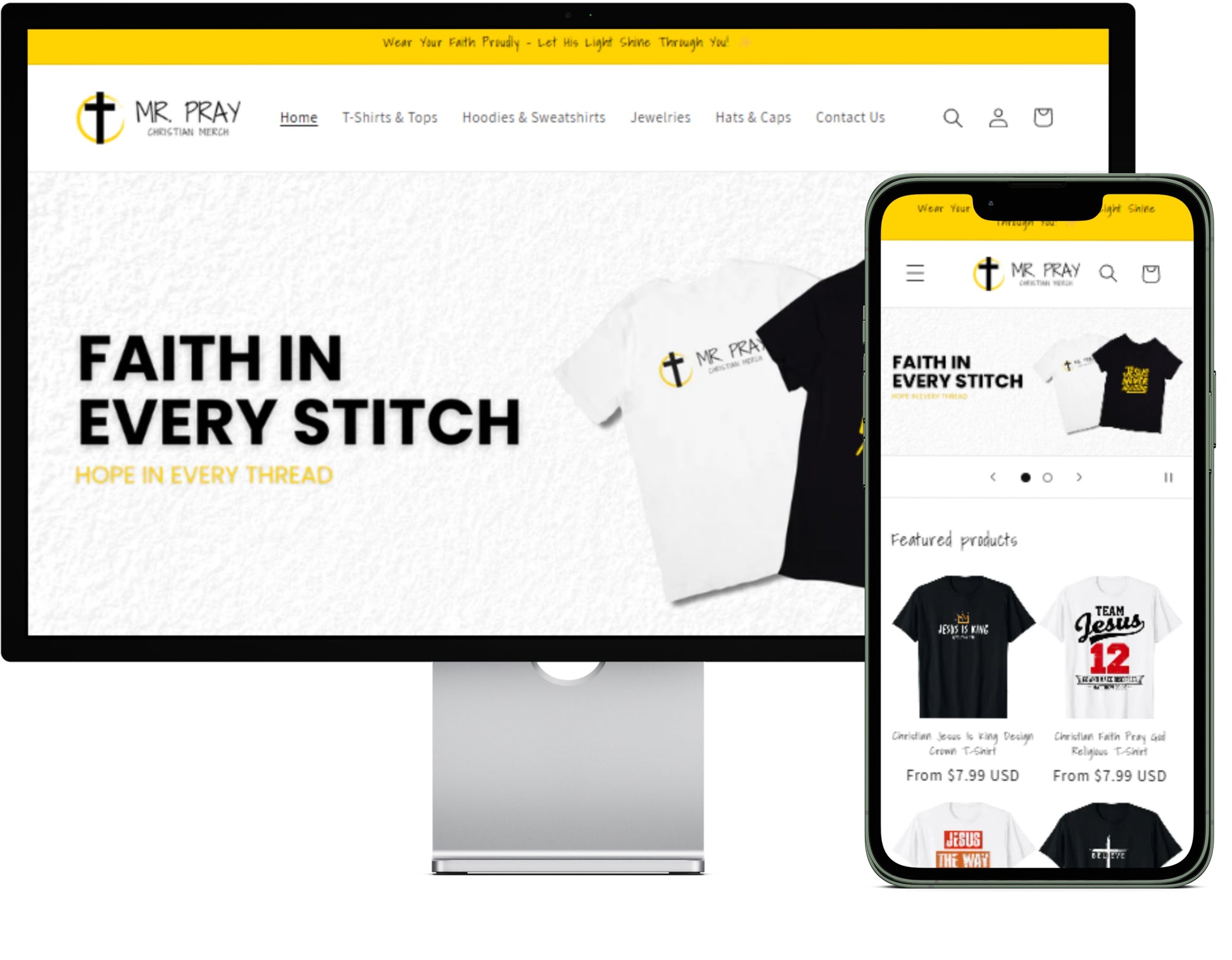 I’m thrilled to introduce MrPray.com (Use password: 123 to view the store—you can remove this after purchase), a ready-to-launch e-commerce store offering a handpicked collection of premium Christian apparel and faith-inspired accessories. ✝️