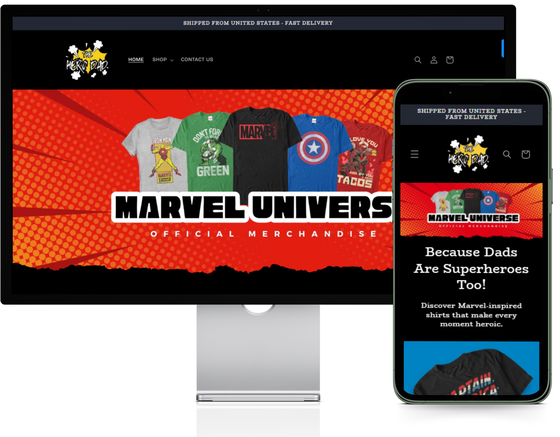 TheHeroDad.com is a fully operational dropshipping store specializing in officially licensed Marvel shirts. Our collection features iconic designs inspired by Marvel’s legendary superheroes. Combining comfort, bold style, and premium quality, TheHeroDad.com caters to Marvel fans who want to showcase their love for the Marvel Universe. With shipping available across US, TheHeroDad.com connects with a wide audience of superhero enthusiasts.